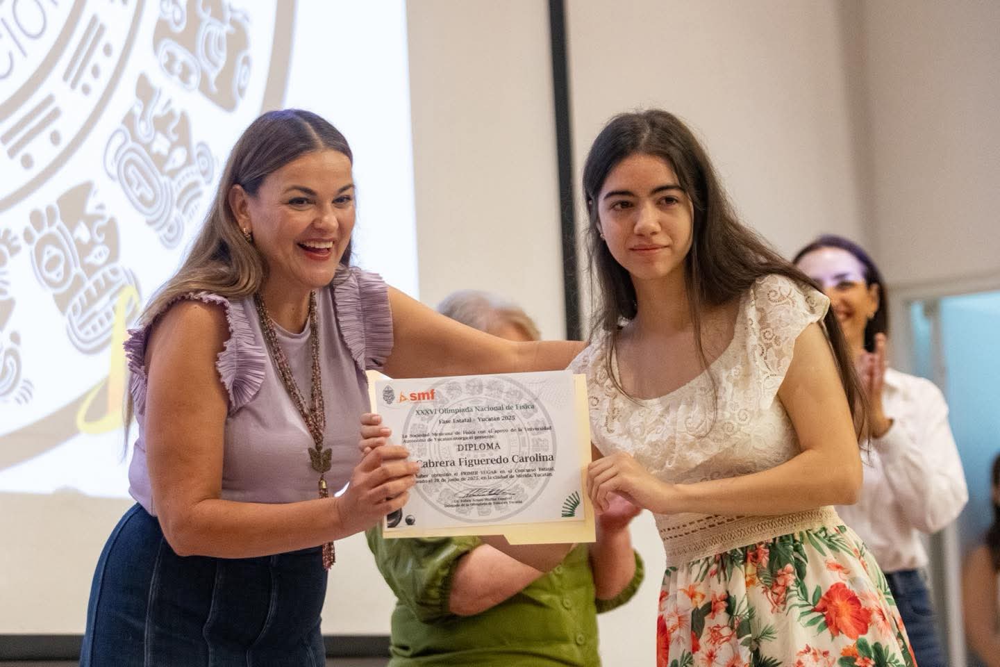 La presidenta municipal, Cecilia Patrón Laviada, asistió a la Ceremonia de Premiación de Ganadores de la Fase Estatal de la Olimpiada Nacional de Física, donde felicitó a las y los jóvenes talentos que destacaron en esta competencia.