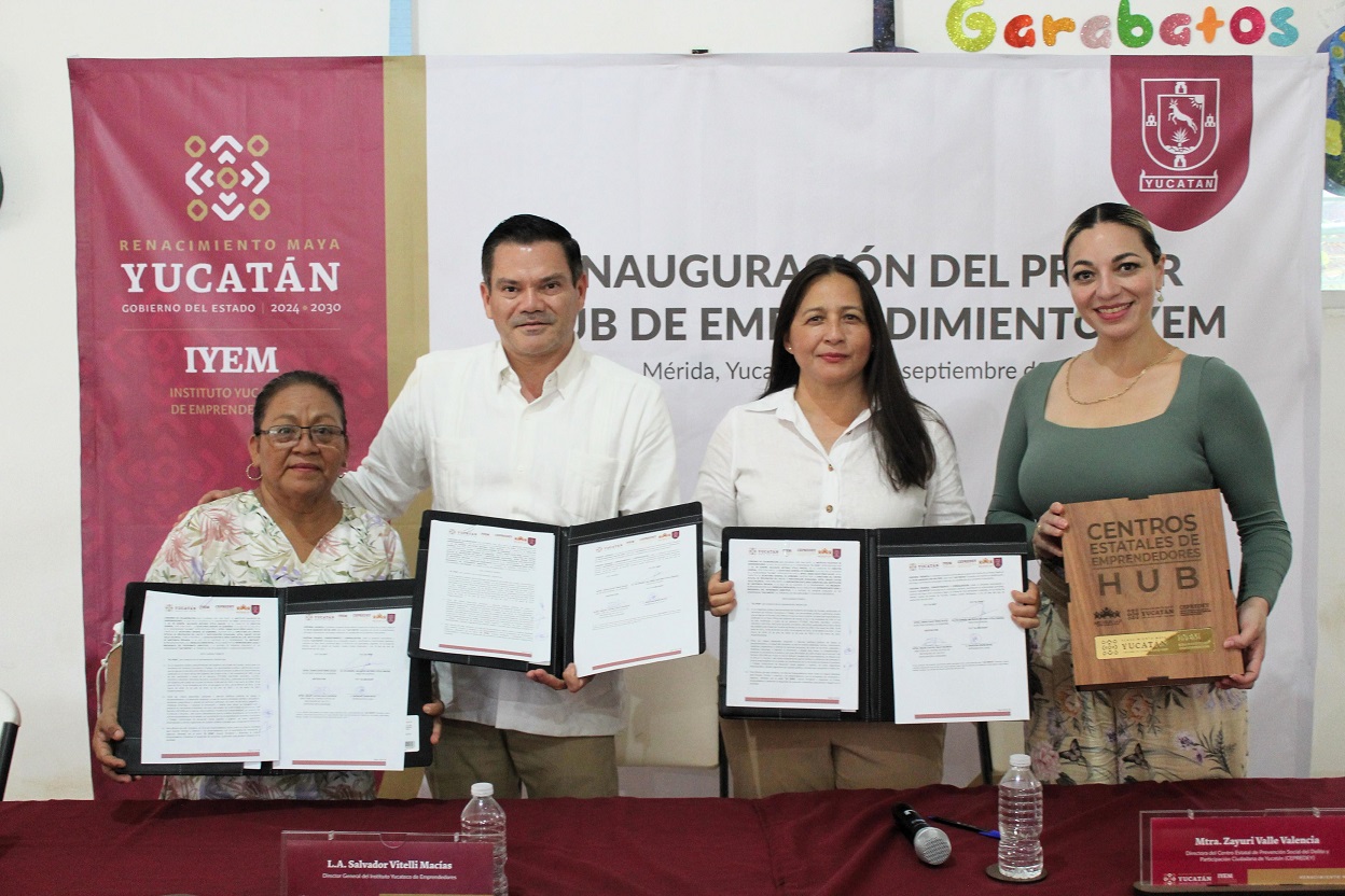 El Instituto Yucateco de Emprendedores (IYEM) inauguró el Primer HUB de Emprendimiento en las instalaciones de Renacer ADN, ubicadas en la colonia Emiliano Zapata Sur I, con el propósito de impulsar ideas, proyectos y capacidades emprendedoras en comunidades rurales y municipios con alto potencial de desarrollo.