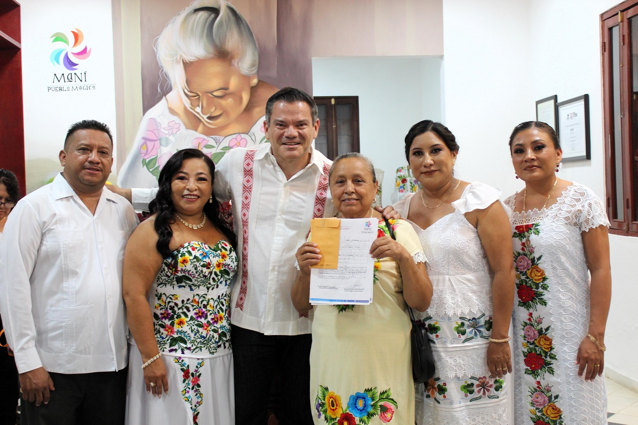 El director general del Instituto Yucateco de Emprendedores (IYEM), Salvador Vitelli Macías, encabezó la entrega acompañado del presidente municipal de Maní, Fredi Evaristo Interián Bojórquez, y la presidenta del DIF municipal, Heydi Puc Uxul.