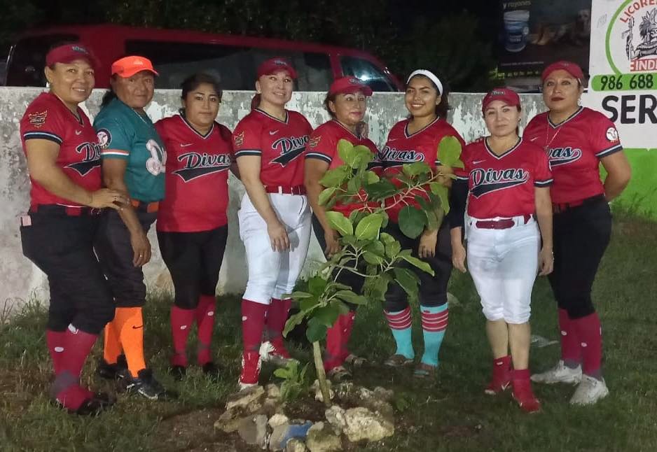 Integrantes de equipos de las ramas femenil y varonil de sóftbol plantaron 4 árboles de neem y un álamo en áreas colindantes al campo de “La Aviación”, en Tizimín, a iniciativa del coordinador municipal de esta disciplina, Manuel Loría Heredia.