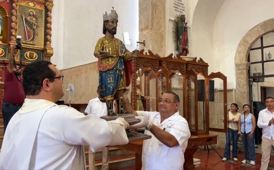 En esta ocasión, por primera vez, el recién nombrado párroco José Gilberto Pérez Can ofició la ceremonia, tanto de la bajada, junto con el sacerdote Ernesto Navarrete Yam, así como la misa donde estuvieron autoridades municipales encabezadas por el alcalde Adrián Quiroz y su esposa, Lina Fernández Alcocer, presidenta del DIF Municipal.
