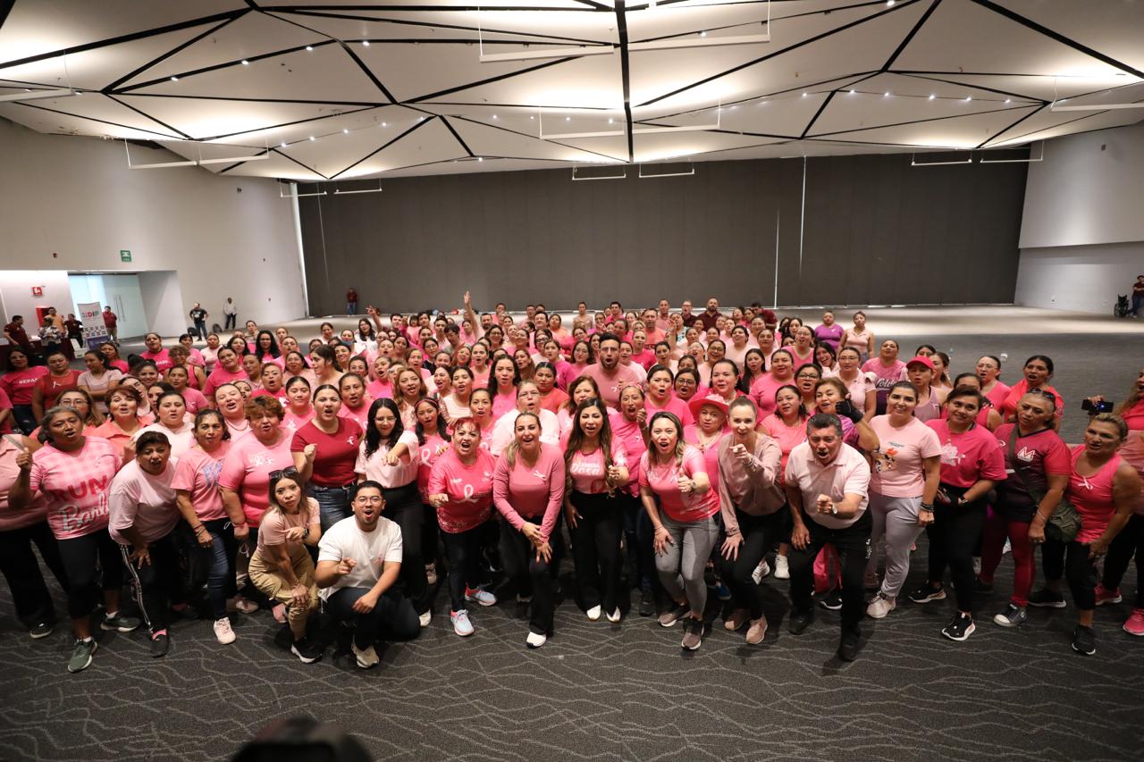 El salón Uxmal 1 albergó a mujeres y hombres que, vestidos de rosa y con calzado deportivo, participaron en esta jornada de prevención y solidaridad. La rutina dinámica, a cargo de la instructora Fanny Canul, combinó movimiento, ritmo y mensajes de autocuidado para los asistentes.