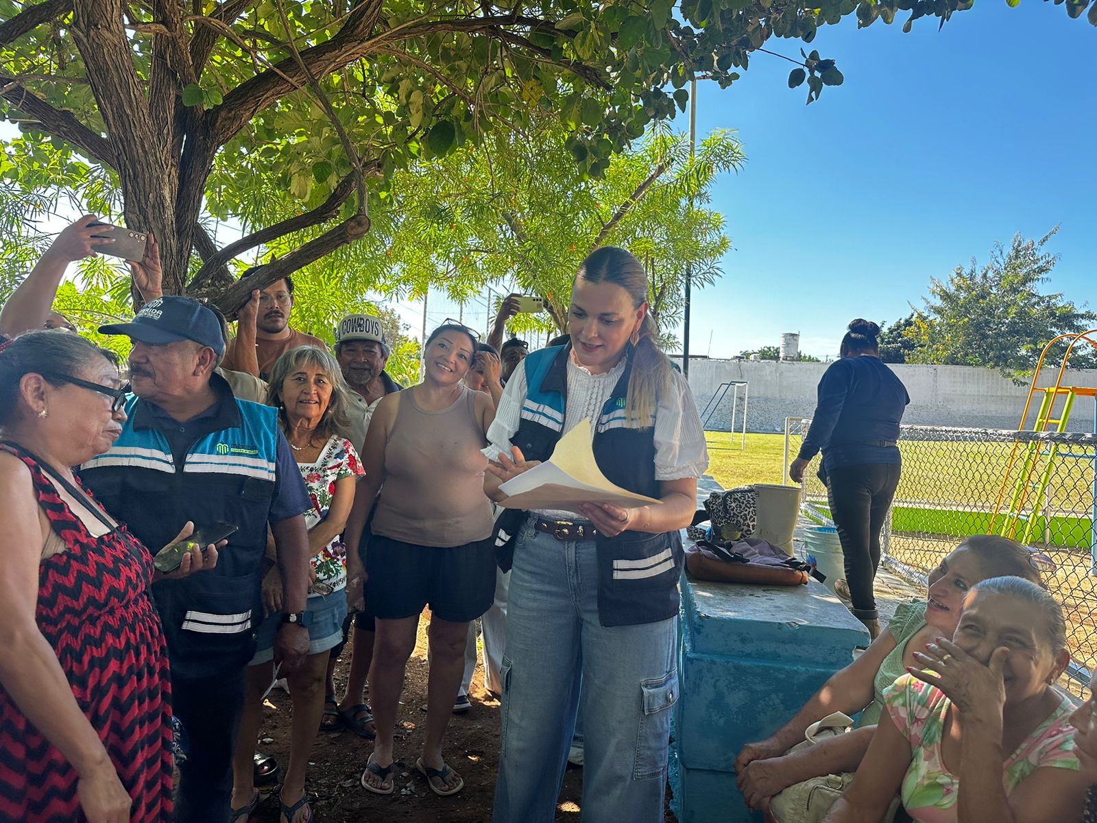 La presidenta municipal destacó que, en esa zona, del oriente de Mérida, se realiza limpieza de rejillas, bacheo, poda, se pinta el parque, dialogan con los vecinos, porque lo importante aquí es mantener limpia nuestras colonias, mantenerlas bien.