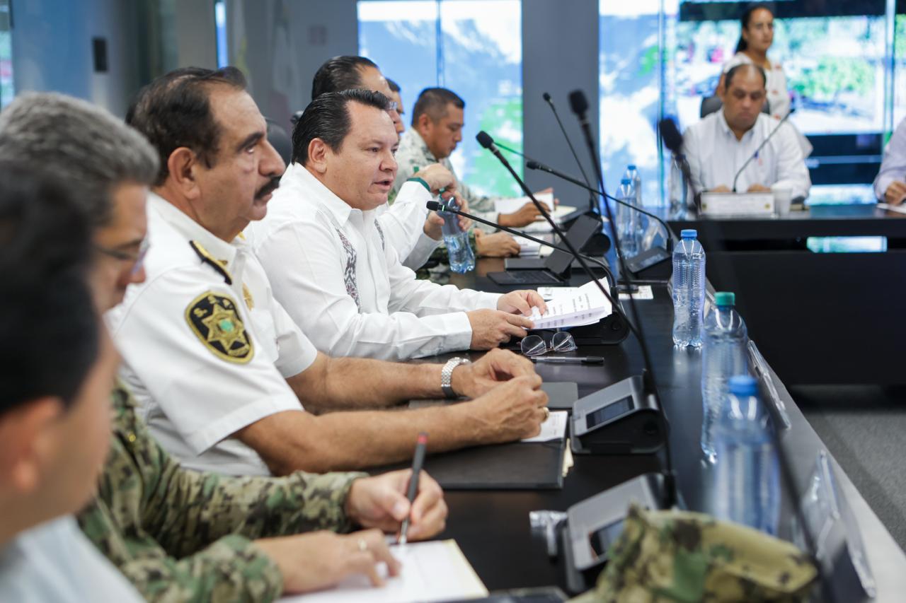 En la reunión estuvieron el secretario general de Gobierno, Omar Pérez Avilés; el jefe de Estado Mayor de la Novena Zona Naval en Yucatán, contralmirante Víctor Omar Mendoza Aguilar; el comandante de la 32/a Zona Militar, general de brigada Bernardo Reginaldo Reyes Herrera; y el fiscal general del Estado, Juan Manuel León León.