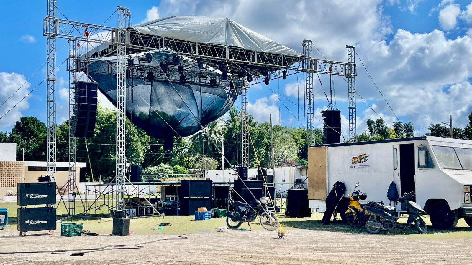 Ya se instaló el escenario donde agrupaciones musicales y solistas van a tocar y cantar al ritmo de los instrumentos para que los acompañen a celebrar.