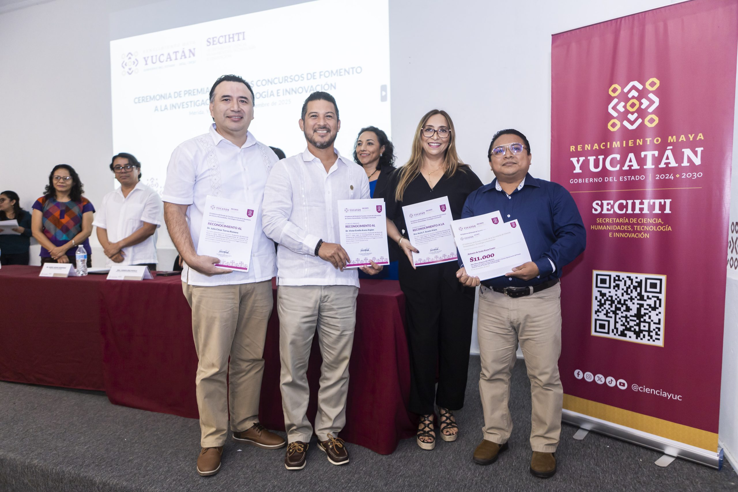 El Gobierno de Yucatán, a través de la Secretaría de Ciencia, Humanidades, Tecnología e Innovación (Secihti), entregó los Premios Estatales de Tesis, Licenciatura y Posgrado, y de Ciencia, Tecnología, Innovación y Vinculación “Dr. Alfonso Larqué Saavedra”, reconociendo el talento y la trayectoria de más de 60 personas en la comunidad científica.