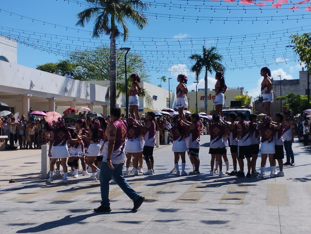 Uno de los más vistosos fue el traje azul marino de las integrantes del Centro de Estudios “Dr. Crescencio Carrillo y Ancona”, portando pergaminos, alusivos a la época, con las frases “Sufragio efectivo, no reelección”, de Francisco I. Madero, y “Tierra y Libertad”, de Emiliano Zapata, representados por otras escuelas con caracterizaciones en maquillaje y cabezas gigantes.
