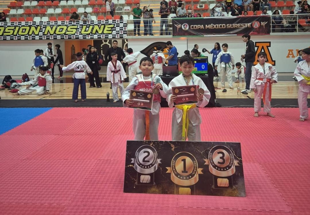 Un total de 22 atletas tizimileños, de entre tres y 15 años, pertenecientes a la Academia Moodo Tihanys y al Ayuntamiento de Tizimín, participaron en la Copa México/Sureste 2025 de Taekwondo, llevada a cabo en la Arena Anáhuac, en Mérida.