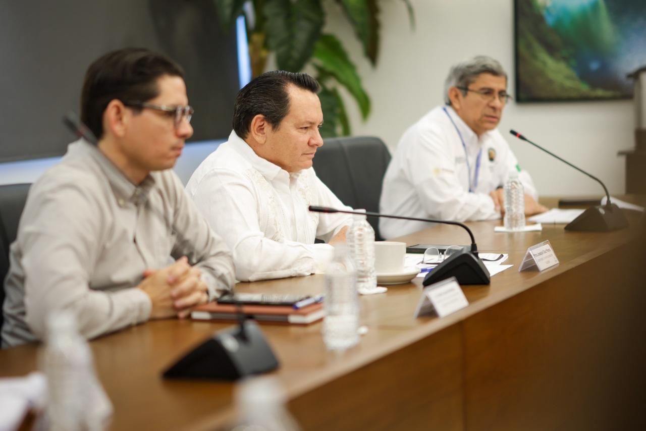 El gobernador Joaquín Díaz Mena encabezó una reunión de trabajo con autoridades federales para evaluar el estatus de la obra del Puerto de Altura de Progreso, la cual registra un avance superior al 60 por ciento.